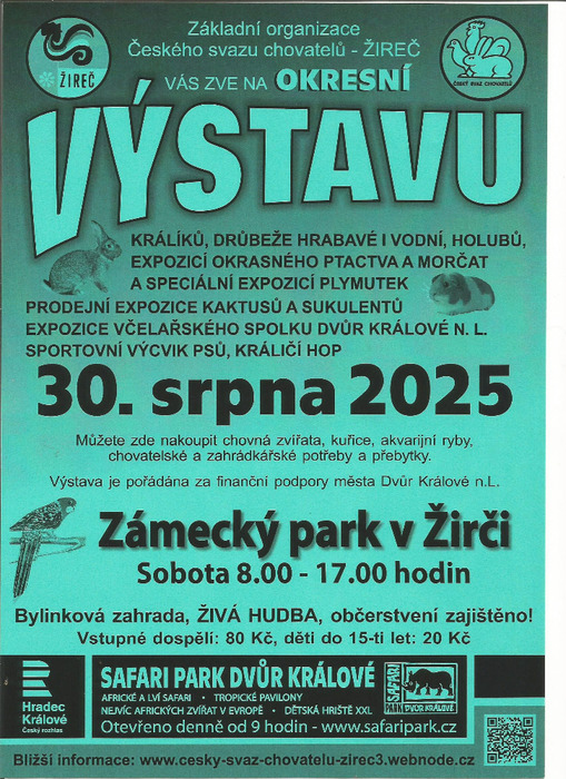 Výstava chovných zvířat, kuřic, akvarijních rybek, chovatelských a zahrádkářských potřeb